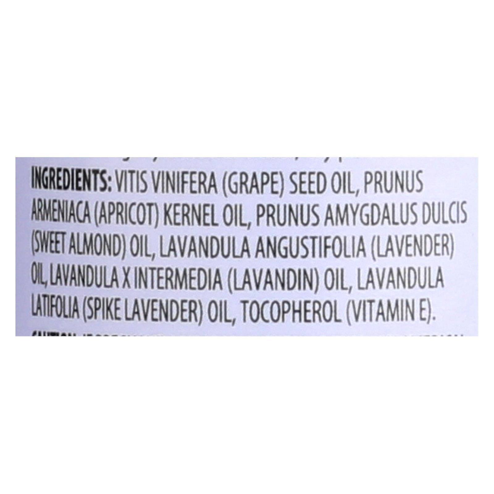 Ingredients: VITIS VINIFERA (GRAPE) SEED OIL;PRUNUS ARMENIACA (APRICOT) KERNEL OIL;PRUNUS AMYGDALUS DULCIS (SWEET ALMOND) OIL;LAVANDULA ANGUSTIFOLIA (LAVENDER) OIL;LAVANDULA X INTERMEDIA (LAVANDIN) OIL;LAVANDULA LATIFOLIA (SPIKE LAVENDER) OIL;TOCOPHEROL (VITAMIN E)