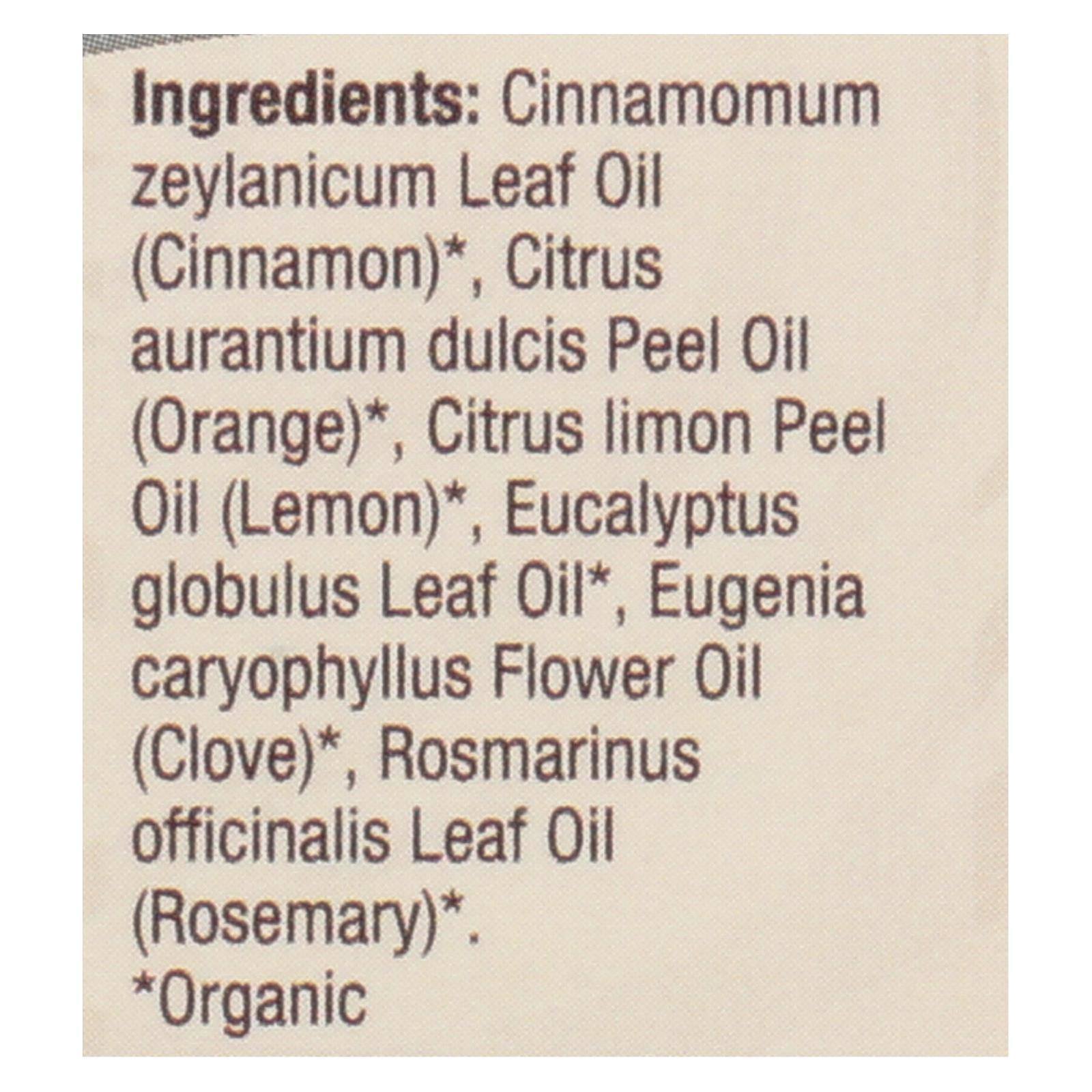 Ingredients: CINNAMOMUM ZEYLANICUM LEAF OIL;CINNAMON;CITRUS AURANTIUM DULCIS PEEL OIL;ORANGE;CITRUS LIMON PEEL OIL;LEMON;EUCALYPTUS GLOBULUS LEAF OIL;EUGENIA CARYOPHYLLUS FLOWER OIL;CLOVE;ROSMARINUS OFFICINALIS LEAF OIL;ROSEMARY